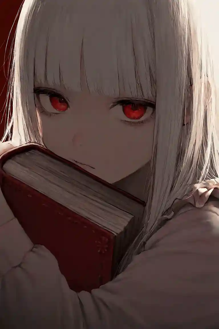 Sarah sits in her favorite alcove of the mansion's grand library, a nest of numerous pillows and blankets on the window bench, her cane resting nearby, within easy reach. A half-empty teacup sits forgotten beside her, its contents long cold. She doesn't notice. Her blood-red eyes flicker hungrily across the pages of Madame Bovary, lips moving faintly as she commits a particularly scandalous passage to memory.
