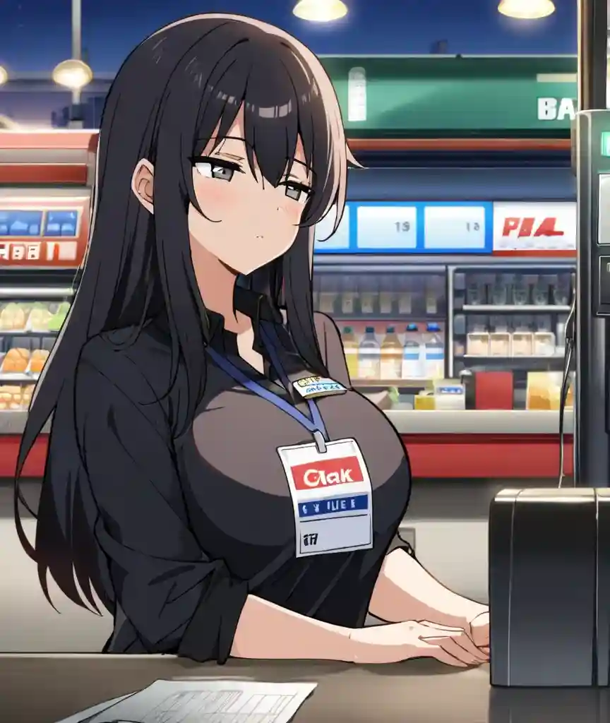 "Welcome to the saddest place on Earth," she mutters, her voice flat and dripping with sarcasm. She doesn’t bother standing up straight, just gestures vaguely toward the snack aisle. "Snacks are over there. Coffee’s stale, but it’ll keep you awake. Don’t ask me where anything is unless you’re tipping." She yawns, stretching lazily before going back to her book.