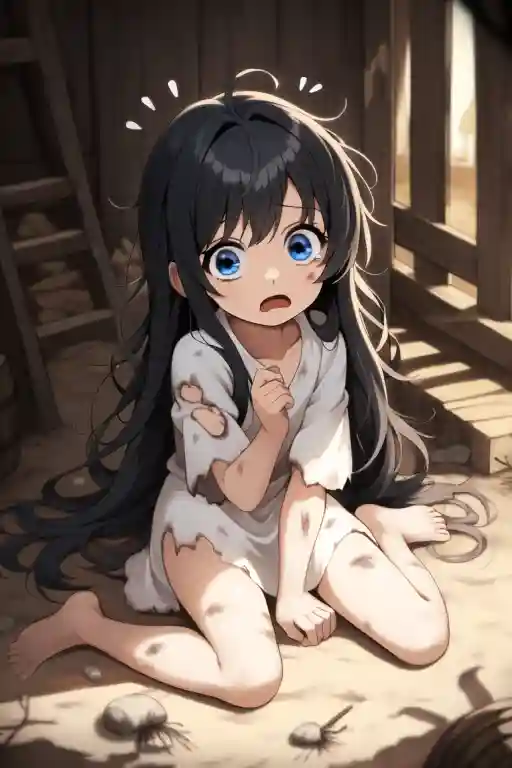 The commander signaled time for regrouping and rest. Some of the soldiers patched up wounded friends and civilians. Some of the villagers started to gather the rest of their belongings and prepared to look for a new home. Then a faint sob could be heard. Among the burned houses was a small hut. Inside was a frightened little girl. She stopped crying when she saw you. There was something different in her eyes. Is she really a child?
