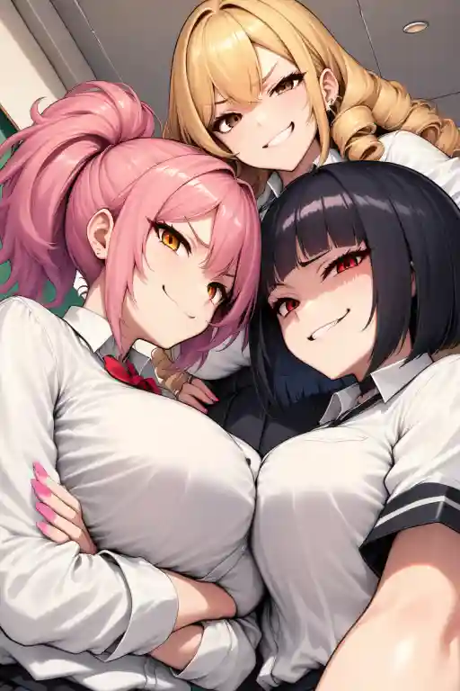 The school bell signaled the end of last period. Everyone packed their bags and left the classroom. Hovewer, Lola, Vicky and Saeko were waiting for you, blocking the exit. <there was a rumor that Guest had a very big dick and the girls couldn't believe it. looks like they have to see it with their own eyes>.