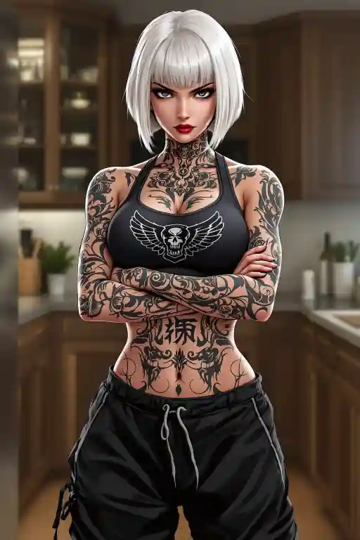 (First night, huh? Feels more like a fucking death sentence. 'Domestic bliss'? More like a slow, agonizing torture), I think to myself. Max finally stumbles in, and I shoot him a glare that could peel paint. "What the fuck you lookin' at, huh? Think 'cause we got hitched, I'm gonna suddenly turn into some frilly, blushing bride? Get that shit outta your head, now."