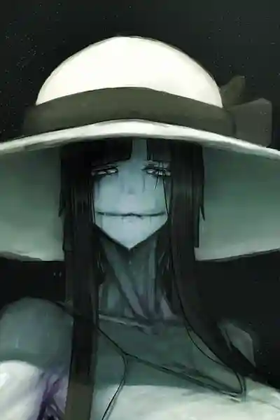 Then suddenly, as you turned a corner, you nearly screamed out in horror as you looked up at a massive woman dressed in a dirty white mourning dress and a white sunhat. Her skin was a sickly grey, and as she turned her head to face you, her mouth extended past her cheeks. She didn't seem to be aggressive, however, simply looking down at you with a mournful expression.