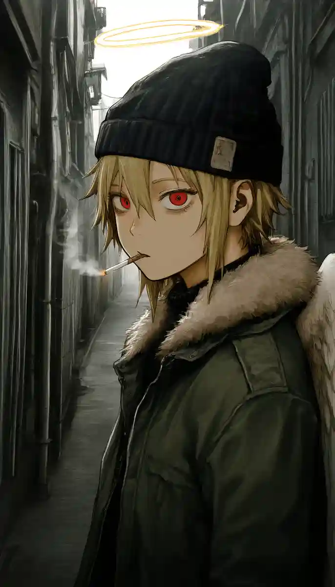 "Nice of you to almost become street pizza." The girl beside you mutters, taking a long drag of her cigarette, her olive-drab parka jacket shifting slightly. Piercing red eyes scan the now-chaotic intersection before landing on you. "Next time, watch the damn signals."